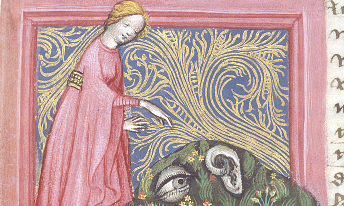 Human ear complaining to Nature from the Spiegel der Weisheit manuscript (Salzburg, 1430)